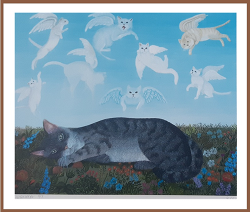 Wydruk na papierze, 1997 r., odręczna sygnatura artystki. Wielkość 28x22 bez ramy. Praca oprawiona z passepartout, pod szkłem.