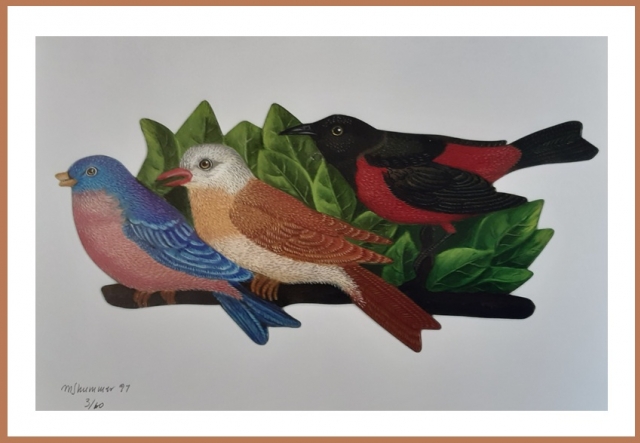 Wydruk na papierze, 1997 r., odręczna sygnatura artystki. Wielkość 28x42 bez ramy. Praca oprawiona z passepartout, pod szkłem